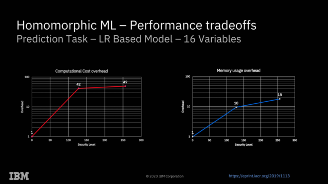 As daunting as the performance penalties for FHE may be, they're well under the threshold for usefulness—Bergamaschi told us that IBM initially estimated that the minimum efficiency to make FHE useful in the real world would be on the order of 1,000:1. With penalties well under 100:1, IBM contracted with one large American bank and one large European bank to perform real-world field trials of FHE techniques, using live data.